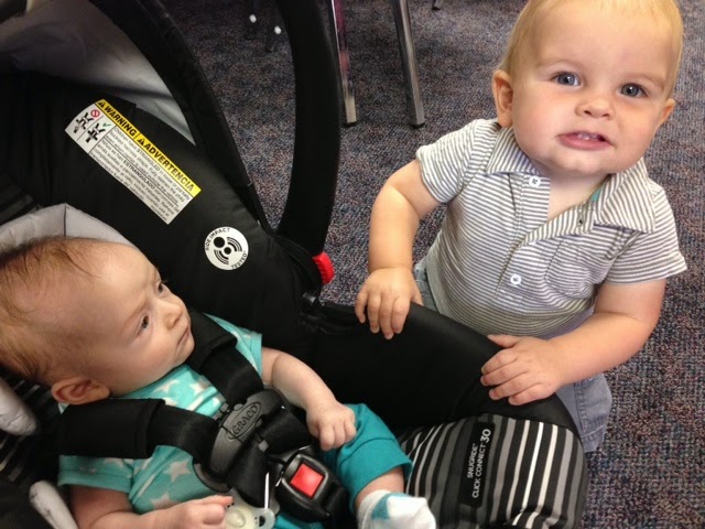Saturday: My friend Katie's BABY SHOWER! Katie is due at the end of August with a little girl. Jude came along to the shower and flirted with all the ladies :) He also got to hang out with his friend Graham: